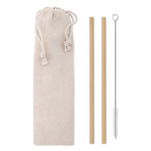 Set of two reuseable bamboo straws ● with stainless steel nylon cleaning brush ● that comes in a cotton pouch ● Since bamboo is a natural material the thickness and surface can vary.